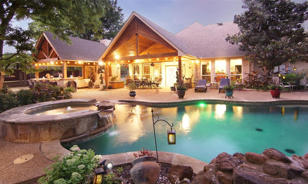 NO CITY TAXES, NO HOA AND 9 ACRES AG EXEMPT! MINERAL RIGHTS NEGOTIABLE! MOTIVATED SELLERS - Country Estate on 10+ Acres in Aledo ISD 5 Beds, 4.5 Baths, 2 Master Suites, Guest Quarters, Pool, Barn and Shop. Welcome to a luxurious country retreat tucked away among mature trees on over 10 pristine acres in the highly acclaimed Aledo ISD. This immaculate, meticulously maintained estate offers exceptional privacy and versatility - ideal for multi-generational living or entertaining. Residence Highlights: 5 spacious bedrooms, including two primary suites,4.5 well-appointed bathrooms, Two full kitchens perfect for extended family or guest quarters, Formal and casual dining spaces (3 total),Two large living areas plus a versatile flex room,3-car garage plus porte-cochere for additional covered parking. Ample storage with floor decking above the garage, Outdoor Amenities: Resort-style pool with waterfall and spa, fully equipped outdoor kitchen for alfresco entertaining, two koi ponds surrounded by professional landscaping and lighting. 3 stall barn with tack room—ideal for horses or hobby farming, 3-bay shop for equipment, vehicles, or workspace. Property is fully fenced and cross-fenced with pipe and no-climb wire. 9 acres AG exempt a rare and valuable benefit. Recent Upgrades & Features: Freshly painted interior, including baseboards, new tile and upgraded flooring throughout, newer energy-efficient HVAC systems, newer windows and window treatments (plantation shutters and cellular shades). Asphalt driveway and updated well pump, stainless steel appliances, water heaters, and enhanced outdoor lighting around pool area. From the tranquil koi ponds and lush landscaping to the expansive, functional layout, this estate offers a true sanctuary just minutes from town. Whether you're looking for peaceful country living or an entertainer’s dream, this property delivers on all fronts. Come experience the best of refined rural living. Schedule your private showing today.